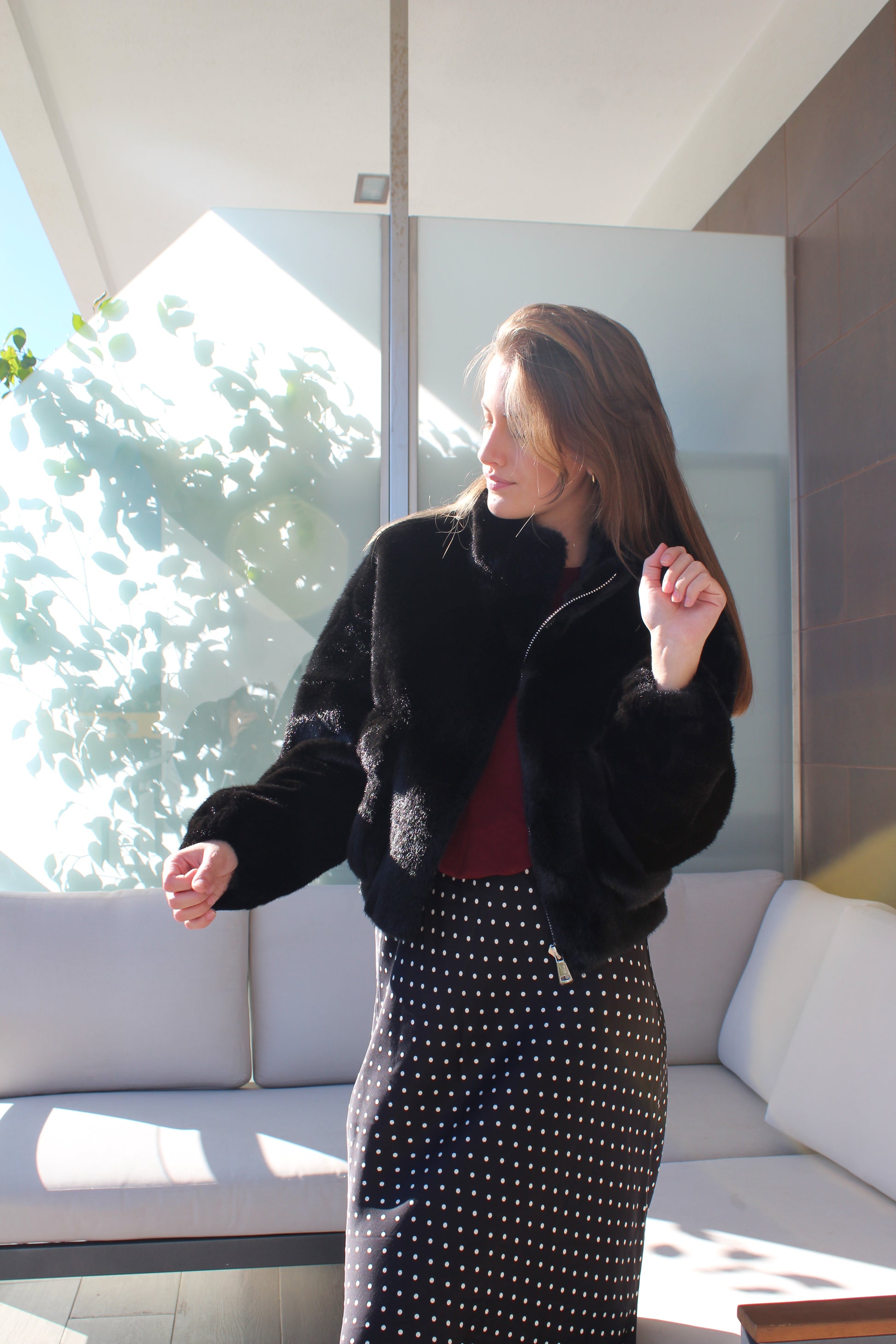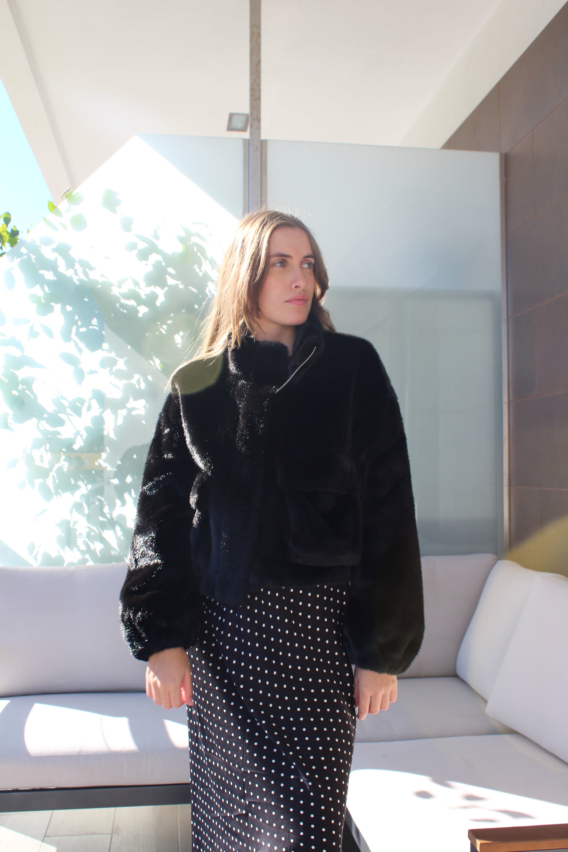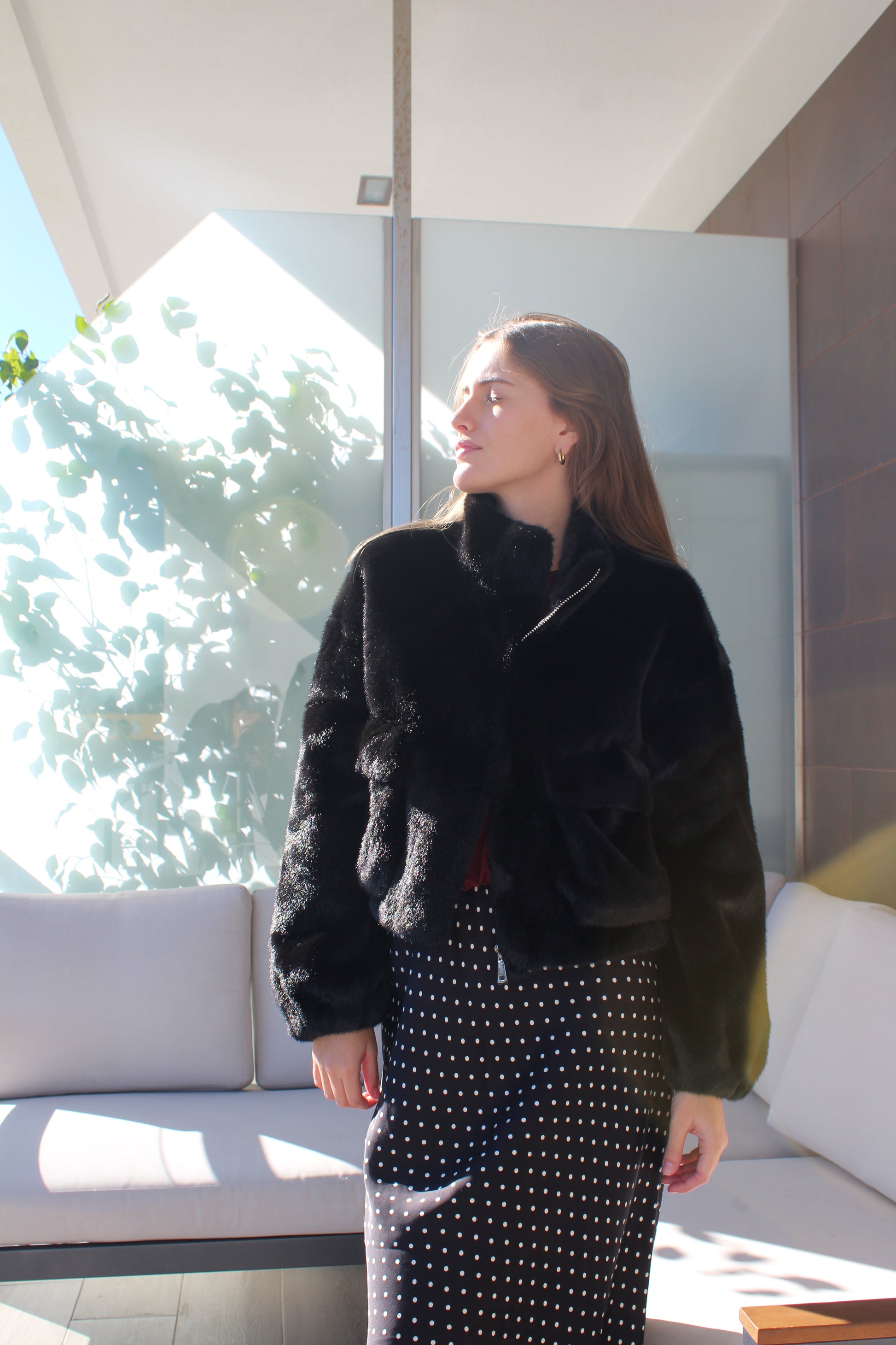 Casaco de pêlo com bolsos