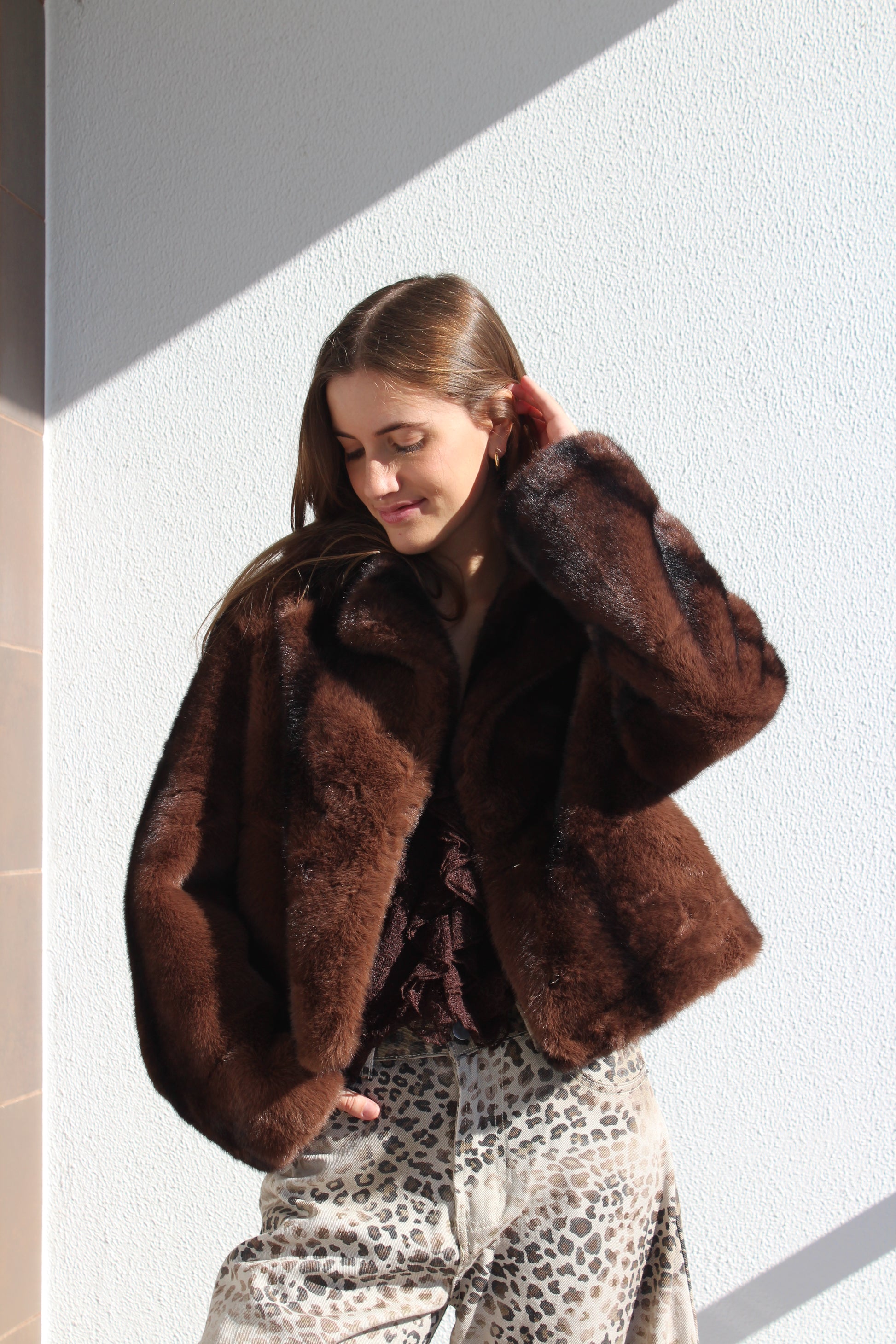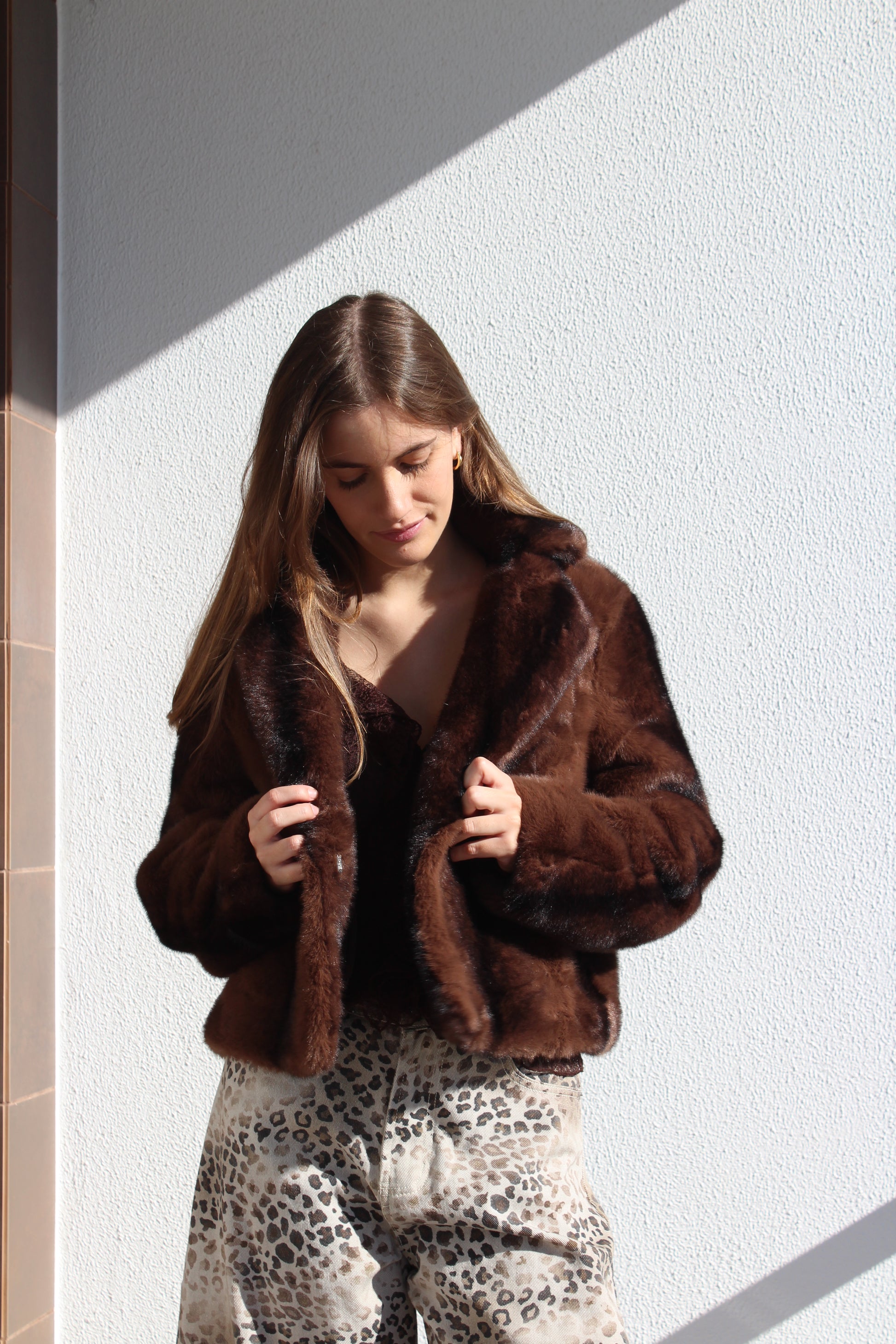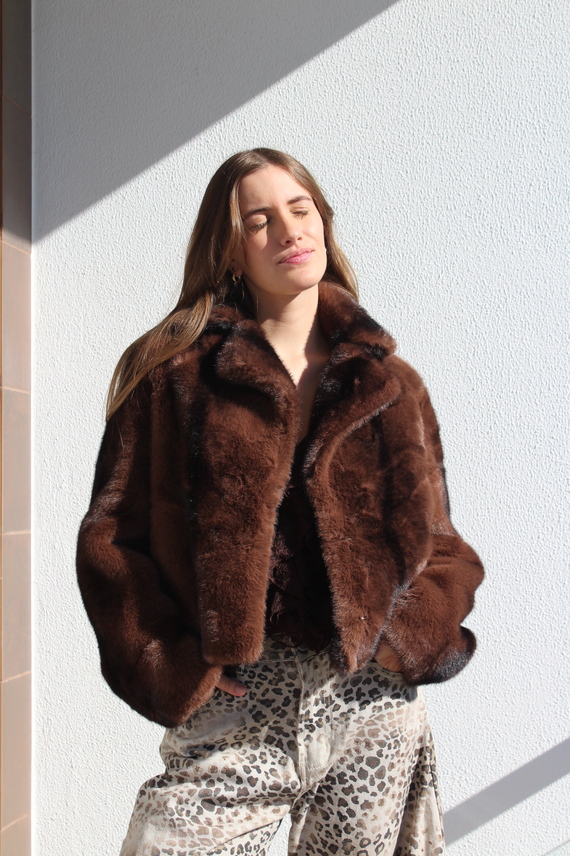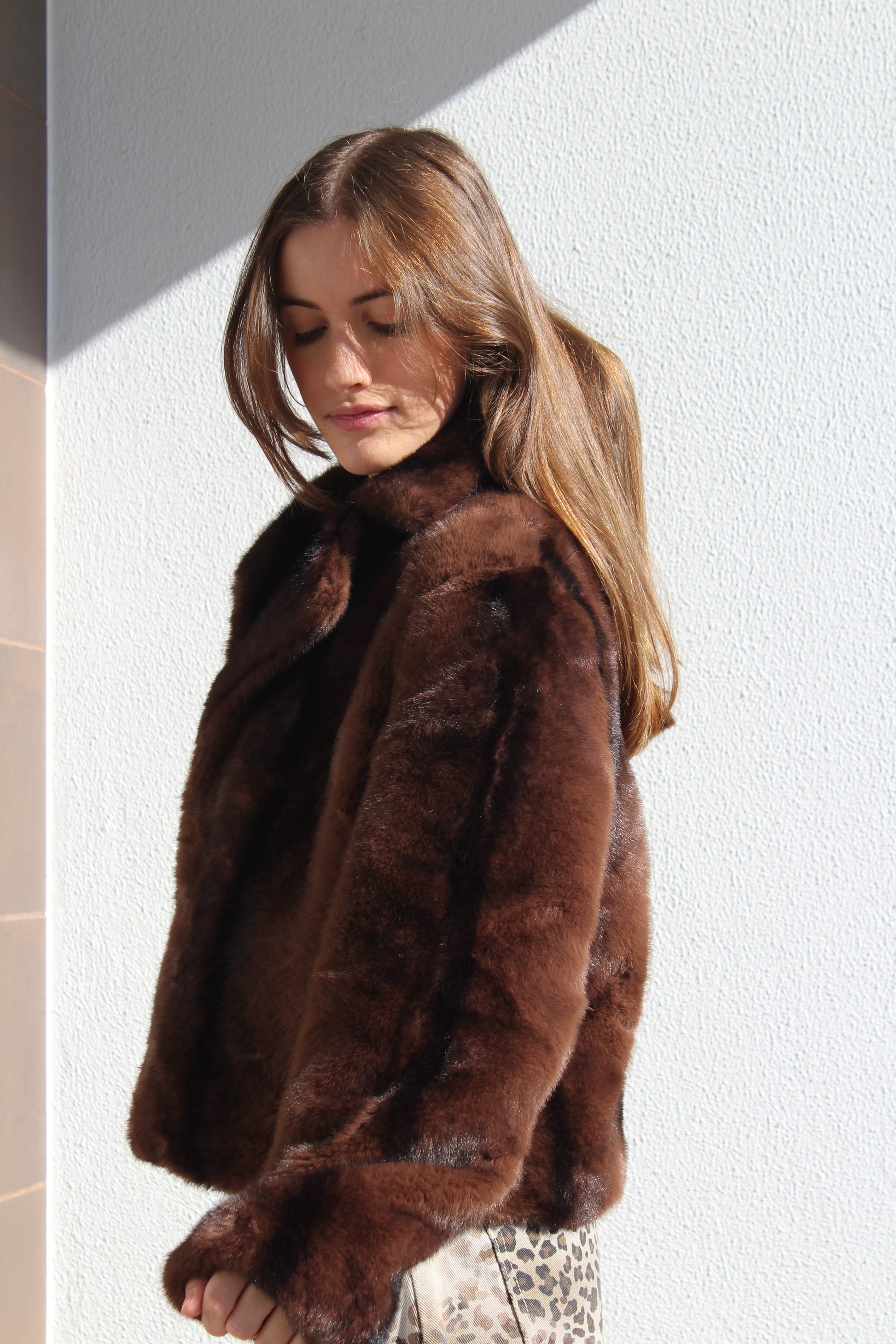 Casaco de pêlo curto com gola